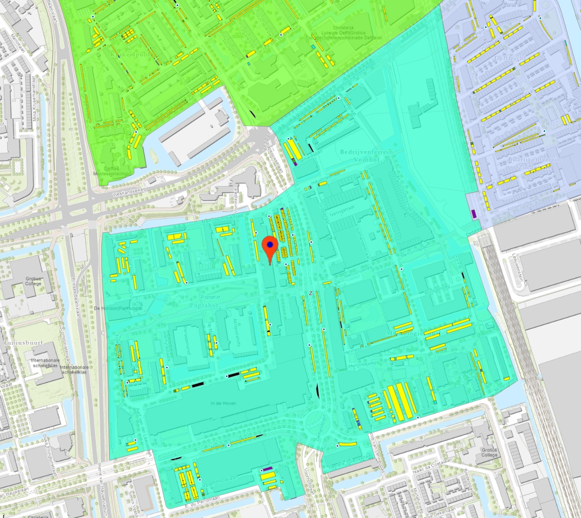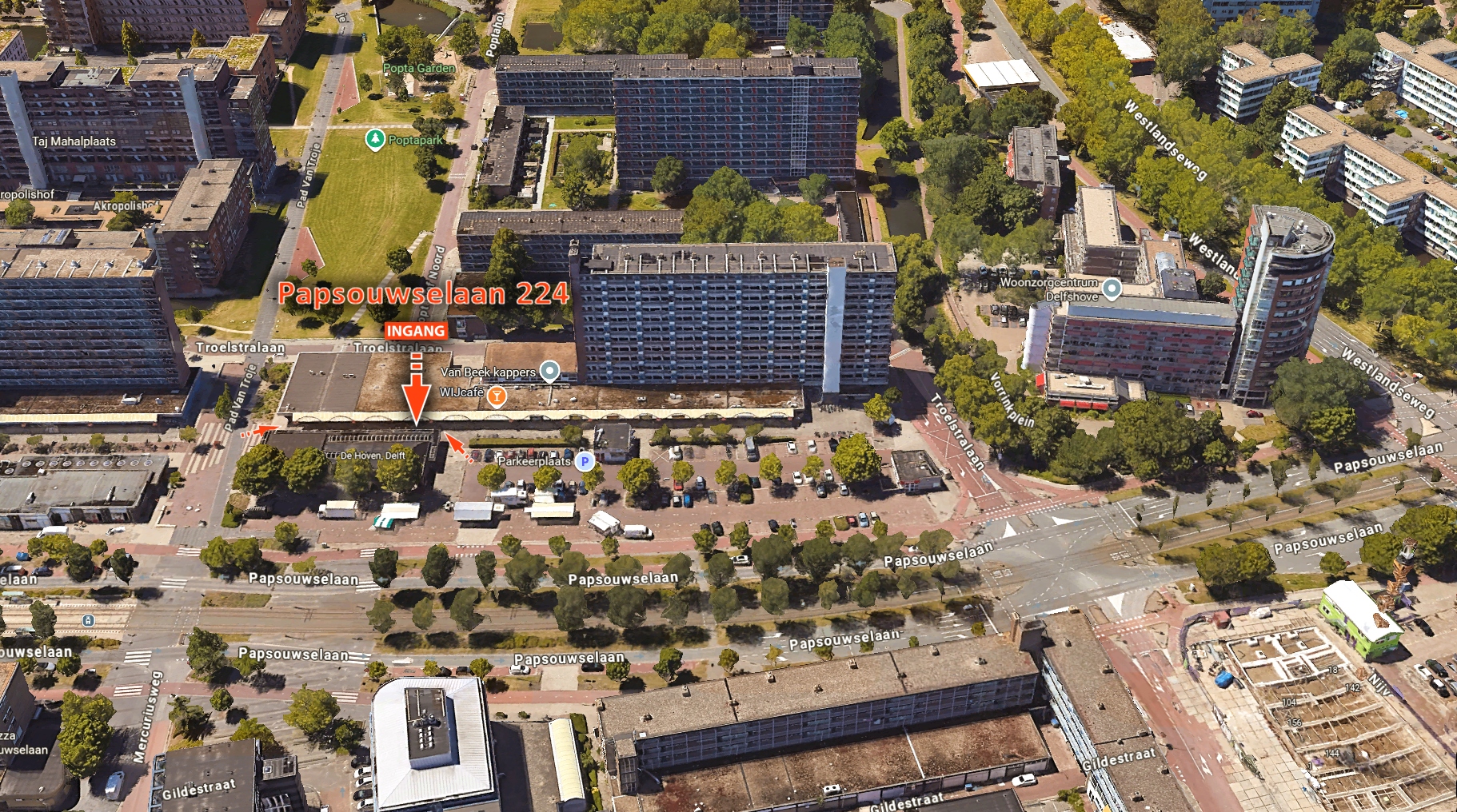 De wijk Voorhof is een druk en dicht bevolkt stuk van Delft dat het best bereikbaar is te voet, met de fiets of met het OV. Kom je met de auto, dan kan het op zaterdag nog wel eens voorkomen dat je even moet wachten totdat er een parkeerplekje vrij is in de buurt. Voor de deur kort laden en lossen is meestal wel goed mogelijk. Parkeren op het parkeerterrein voor de deur is tot 12 uur gratis, daarna kost het € 1,00 voor het eerste uur en € 4,50 voor elk uur daarna. In de parkeergarage van De Hoven kan je wel drie uur aangesloten gratis parkeren. Vanaf 12 uur kan je verder in de buurt alleen parkeren tegen betaling of met een parkeervergunning voor gebied Z.